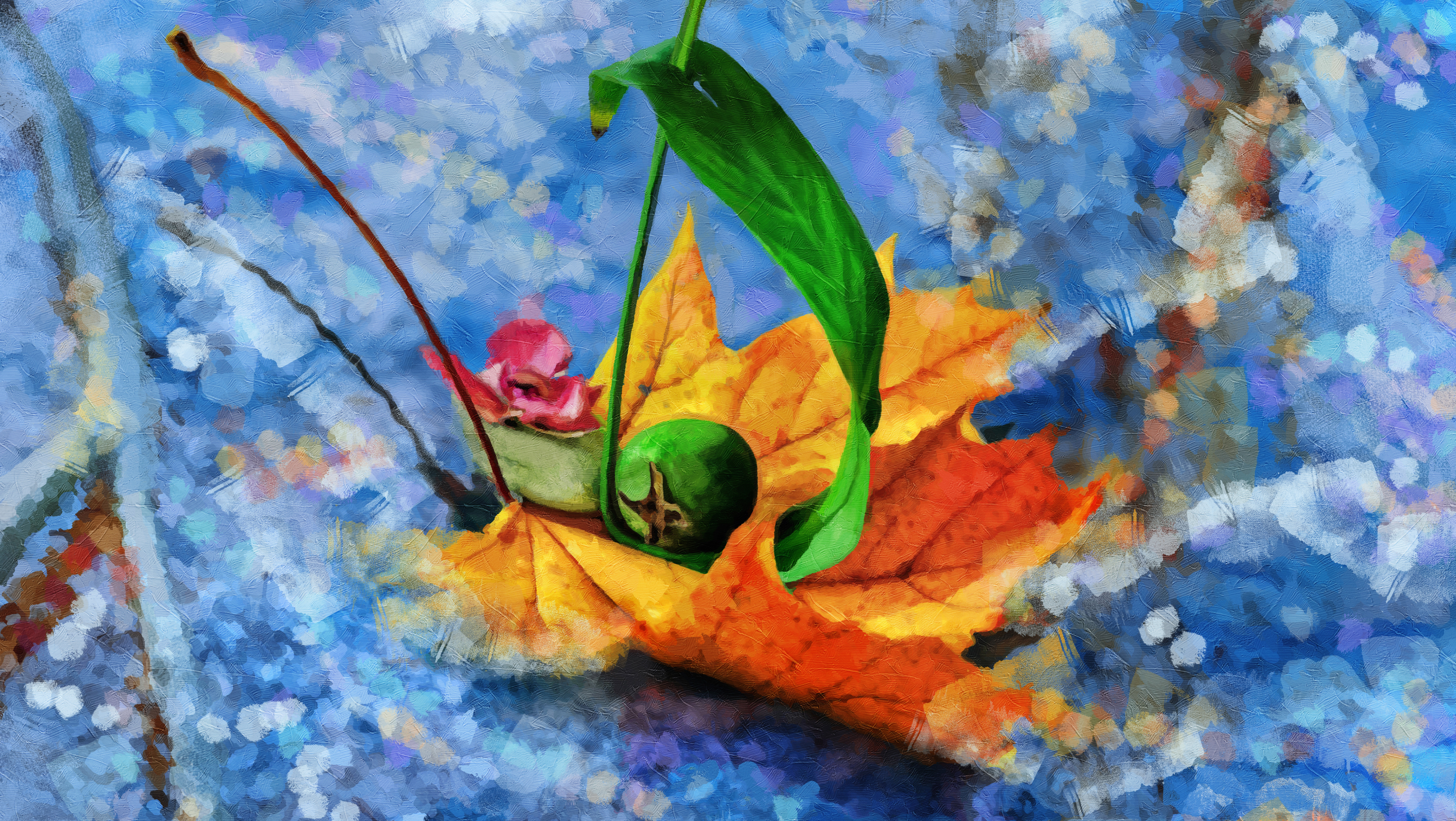 The work is done in mixed media. I used my lemon photo. The rest of the details were drawn by hand using Adobe Photoshop tools.