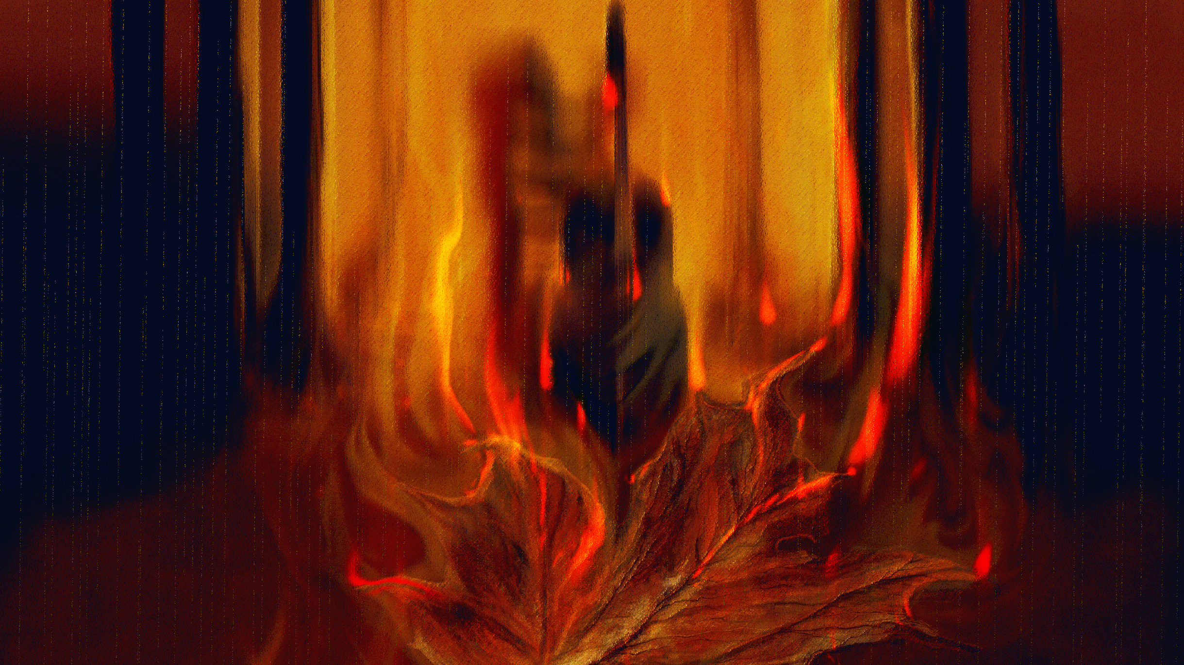The work is done in mixed media. I used a photo of a fig with honey drops and a bumblebee. The rest of the details and textures were hand painted using Adobe Photoshop tools.